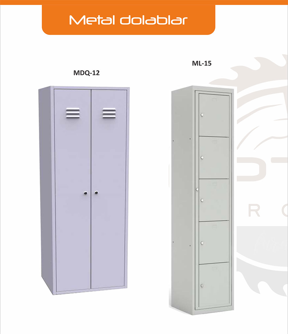 Şirkət ofislər, anbarlar, arxivlər, banklar, sənaye binaları, idman və təhsil müəssisələrinin soyunub-geyinmə otaqları üçün mebellərin geniş çeşidini təklif edir.