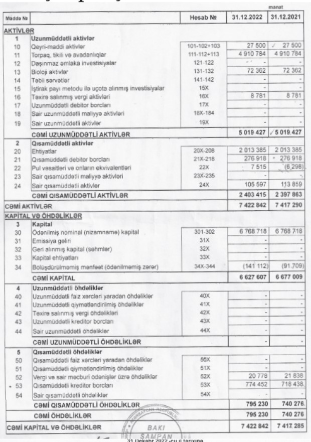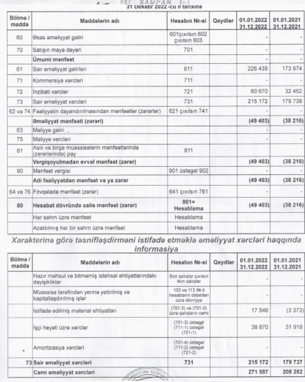 "Bakı Şampan Şərabları" ASC 2022-ci ili 49,4 min manat xalis zərər ilə bağalyıb. Şirkət 2021-ci ili 38,2 min manat xalis zərər ilə bağlamışdı.