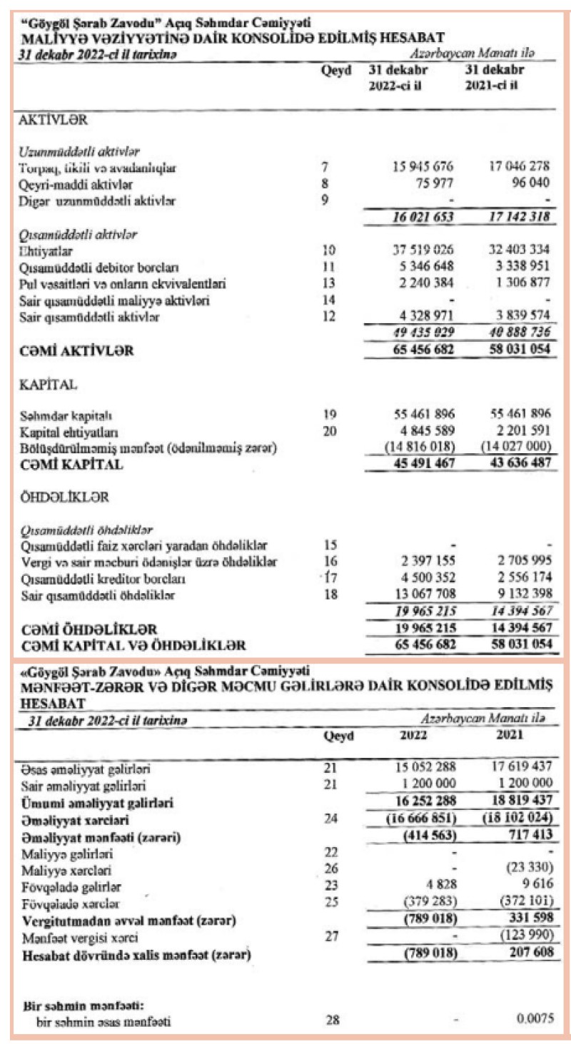 Xatırladaq ki, “Göygöl Şərab Zavodu” ASC 2020-ci ili 1 milyon 427 min 309 manat xalis mənfəət ilə bağlamışdı. 2020-ci illə müqayisədə 2021-ci ildə “Göygöl Şərab Zavodu”nun xalis mənfəəti 7 dəfəyə yaxın azalmışdı.