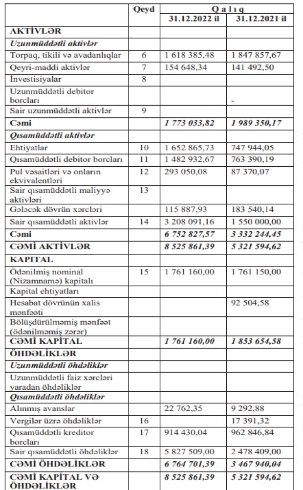 Marja.az xəbər verir ki, 2021-ci ildə Şirkətin əsas əməliyyat gəlirləri (satış) 2 milyon 505 min 259 manat ikən, 2022-ci ildə 5 milyon 942 min 431 manata yüksəlib (2,4 dəfə artıb).