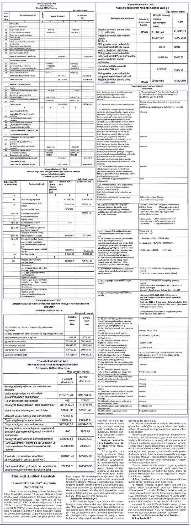 31 dekabr 2022-ci il tarixində "Cənubtikintiservis" ASC 16 milyon 337 min manat cəmi aktivlərə malik olub.