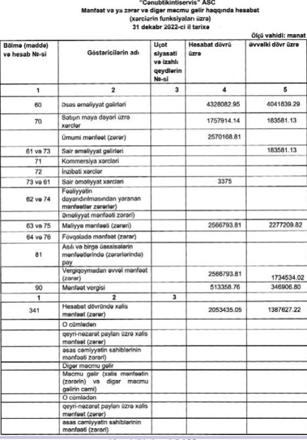 Adından tikinti sektorunda fəaliyyət göstərdiyi təəssüratı yaradan "Cənubtikintiservis" ASC 2022-ci ili 2 milyon 53 min manat xalis mənfəət ilə başa vurub. ASC 2021-ci ili 1 milyon 388 min manat xalis mənfəət ilə bağlamışdı. Beləliklə,"Cənubtikintiservis" şirkətinin xalis mənfəəti 2021-ci illə müqayisədə 2022-ci ildə 666 min manat və ya 48% artıb.