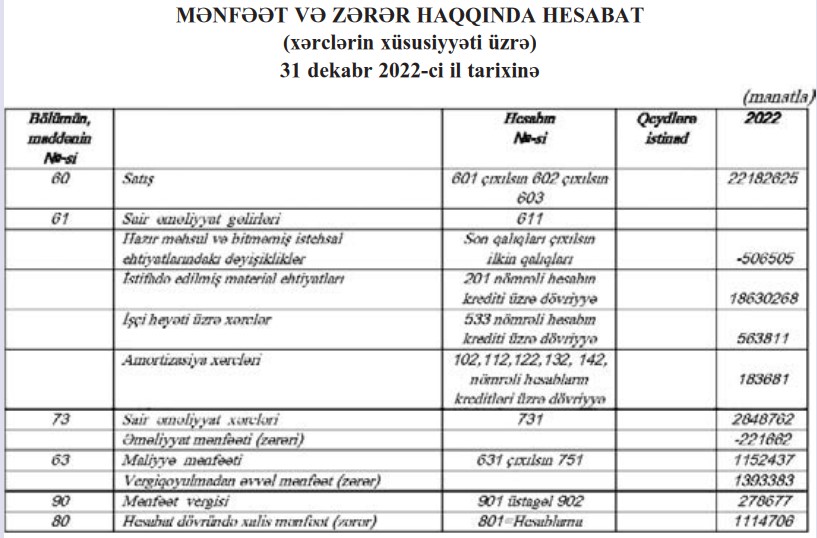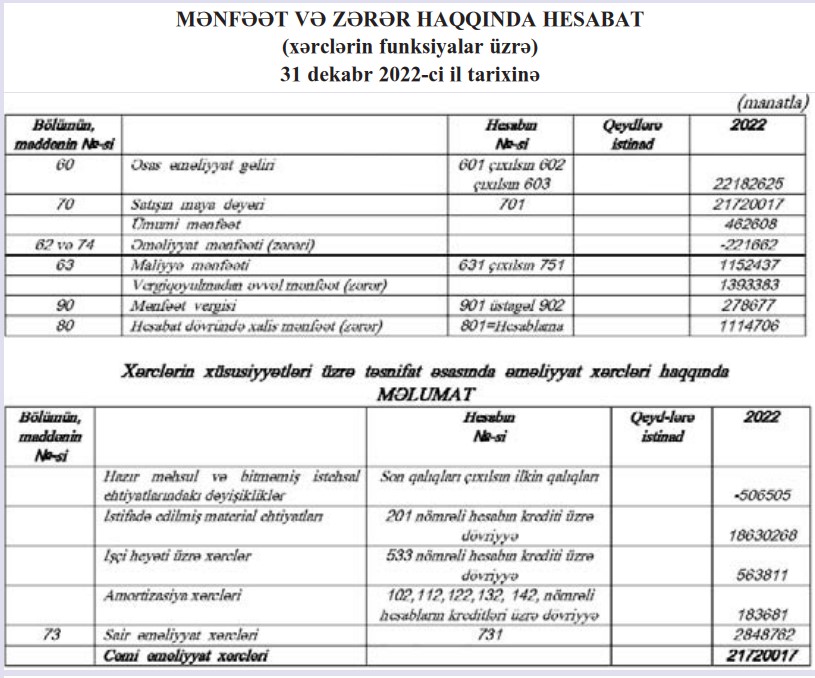 Diqqəti cəlb edən ötən "Bakı-Taxıl" ASC-nin əməliyyatında zərərin yaranmasıdır. Belə ki, satışdan 22 miylon 183 min manat gəlirlərə qarşı əməliyyat xərcləri 22 milyon 404 min manat təşkil edib. Nəticədə 222 min manat əməliyyat zərəri yaranıb. 1 milyon 152 min manat maliyyə mənfəəti hesabına "Bakı-Taxıl" ASC xalis mənfəətə çıxıb.