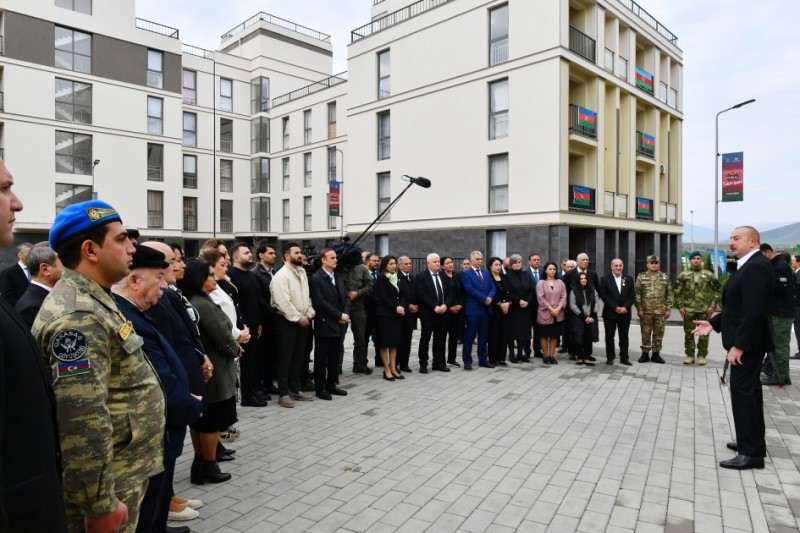 İlham Əliyev Füzuli şəhərinə köçmüş sakinlər ilə görüşüb