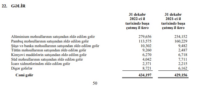 Hesabatda qeyd edilib ki, Qrupun əməliyyatları qlobal alüminium və alüminium oksidinin qiymətlərindən çox asılıdır. Alüminiumun qiyməti 2022-ci il ərzində bir ton üçün təxminən 3 800 ABŞ dolları məbləğinə yüksəlmiş və sonra ilin sonuna qədər 2 400 ABŞ dolları məbləğinə enmişdir. 2022-ci il ərzində xam pambığın bir tonunun qiyməti 2 910 ABŞ dollarından 2 210 ABŞ dollarına düşmüşdür. Dünya bazarında ipəyin qiyməti 2022-ci il ərzində bir ton üçün 70.2 ABŞ dollarından 61.1 ABŞ dollarına qədər azalmışdır.
