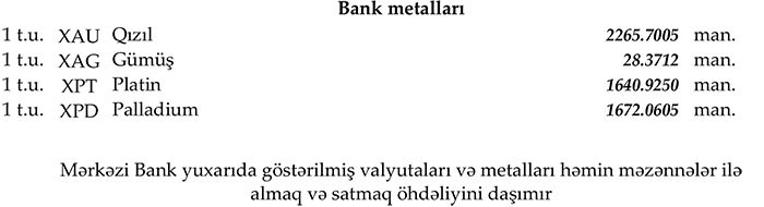 Martın 6-da rəsmi olaraq 1 dollar 1,7001 manata, 1 avro 2.0992 manata, 1 Rubl 0,0301 manata bərabər idi.