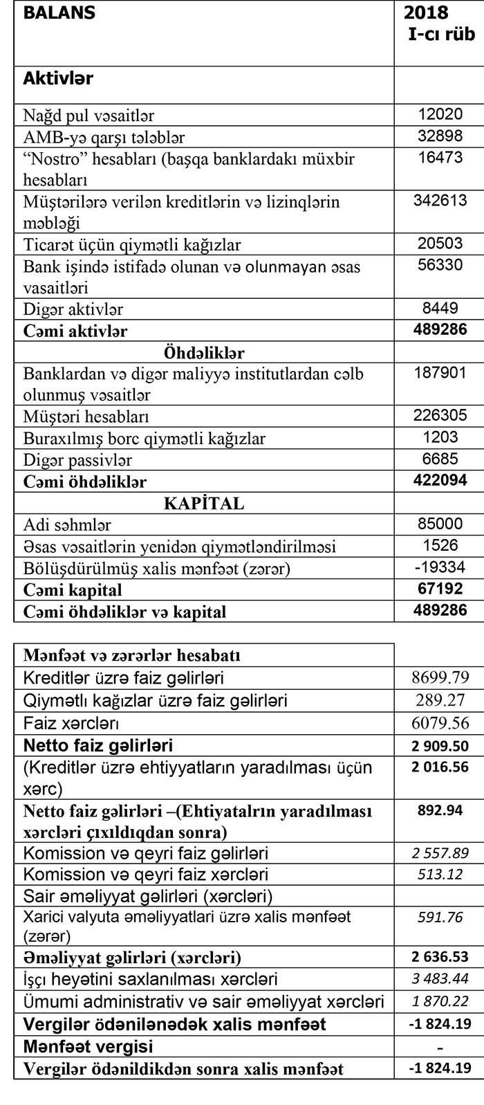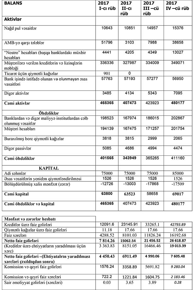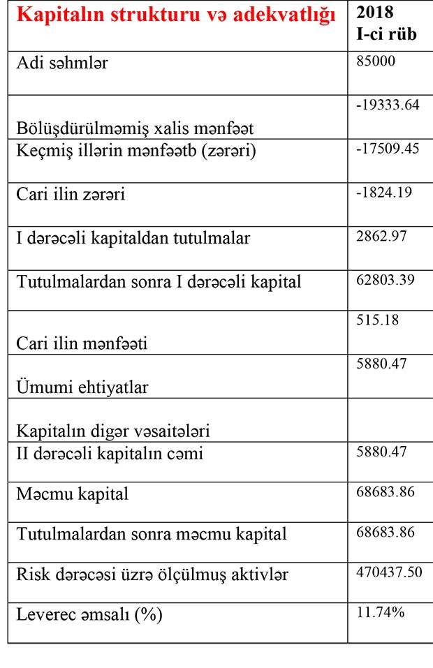 Əsas gəlir mənbəyi olan Bankın kredit portfeli də azalıb. 2017-ci ilin sonunda müştərilərə verilmiş kreditlər 349 milyon 71 min manat ikən, 31 Mart 2018-ci ildə 342 milyon 613 min manata düşüb.
