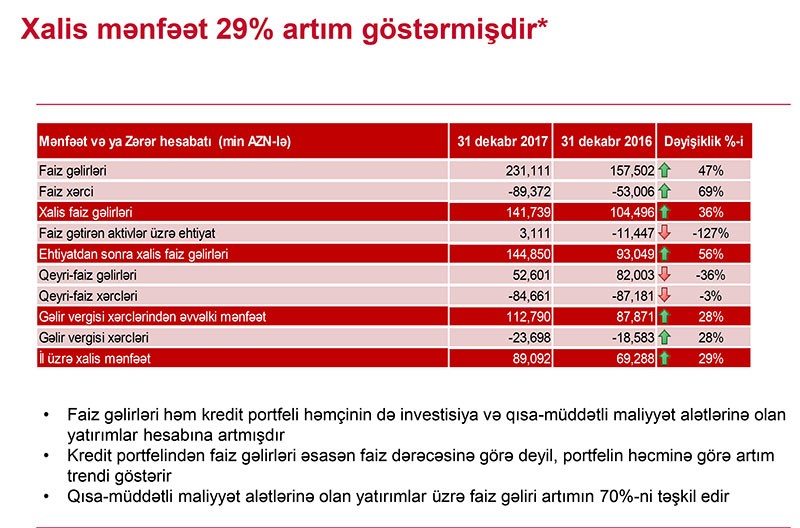 PAŞA Bankın 31 dekabr 2017-ci il üzrə maliyyə nəticələri
