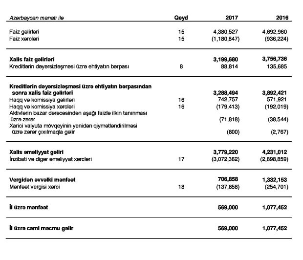 "Embafinans" 2017-ni mənfəətlə başa vurduğunu açıqladı