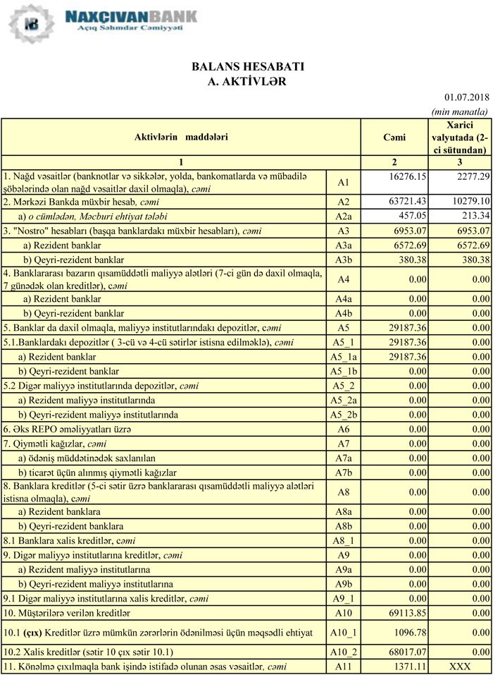 “Naxçıvanbank”ın maliyyə vəziyyəti məlum oldu