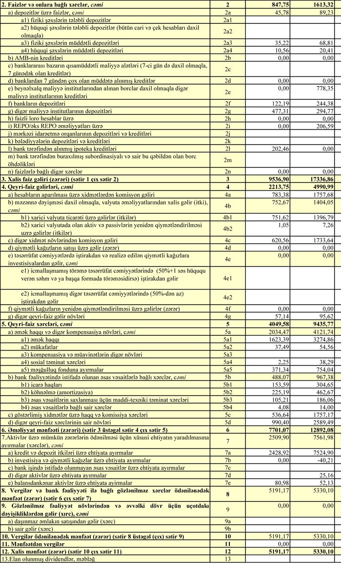 “Marja” Bankın maliyyə hesabatlarına istinadən xəbər verir ki, 2018-ci ilin birinci yarısında Bankın faiz gəlirləri 18 milyon 950 min manat, qeyri-faiz gəlirləri 4 milyon 991 min manat təşkil edib. Faiz və qeyri-faiz xərcləri çıxıldıqdan sonra 12 milyon 892 min manat əməliyyat mənfəəti qalıb. Əməliyyat mənfəətinin 7 milyon 561 min manatı ehtiyata yönəldilib. Nəticədə Bank 2018-ci ilinin birinci yarısını 5 milyon 330 min manat xalis mənfəətlə başa vurub.
