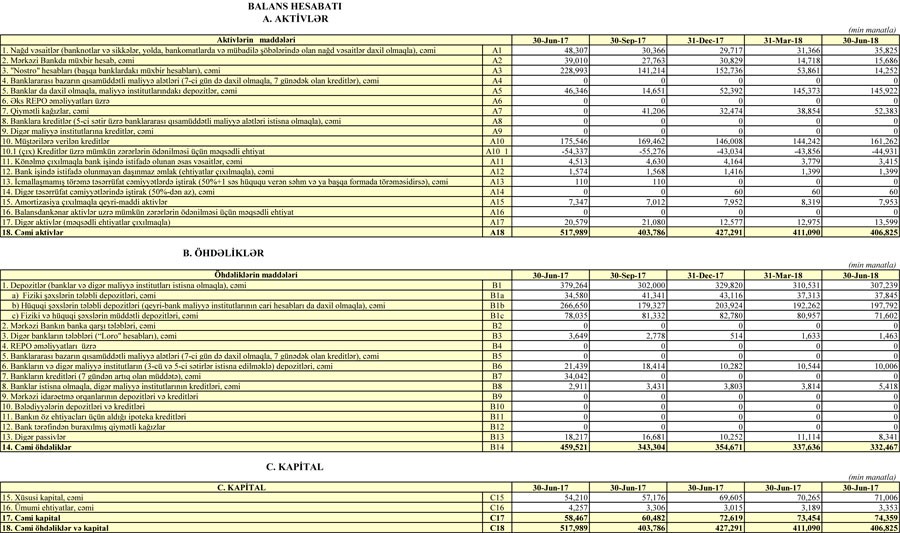 Aktivlər üzrə mümkün zərərlərin ödənilməsi üçün xüsusi ehtiyatın yaradılmasına ayırmalar çox artmayıb. Əgər ötən iln 6 ayında ehtiyatlara 5 milyon 255 min manat ayırılmışdırsa, bu ilin 6 ayı ərzində 5 milyon 626 min manat ayırılıb.