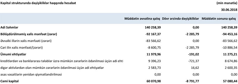 Hesabatdan görünür ki, “AccessBank”, ehtimal olunan depozit və kredit itkilərinə görə ehtiyat yaratmağı dayandırıb. Bank ötən ilin yanvar-iyun dövründə aktivlər üzrə mümkün zərərlərin ödənilməsi üçün xüsusi ehtiyatın yaradılmasına 26 milyon 86 min manat ayırmışdı. Ehtiyatlara ayırmaların dayanması, əksinə ehtiyatların mənfəətə əlavə edilməsi vəziyyətin normallaşdığına işarədir.