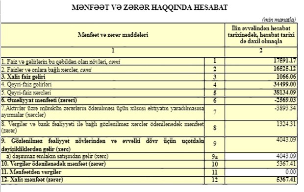 "İlkin olaraq onu qeyd etmək istəyirik ki, Bank 2017-ci ildən fərqli olaraq 2018-ci ili xalis mənfəətlə başa vurmuş və il ərzində 5,4 mln. manat xalis mənfəət əldə etmişdir.