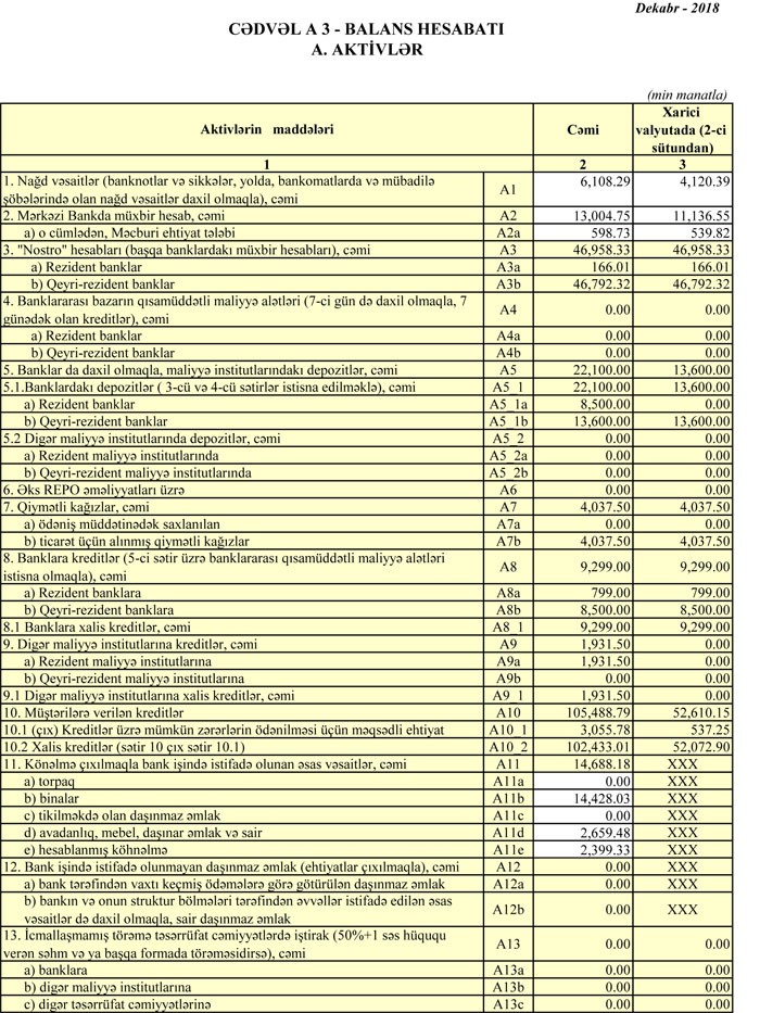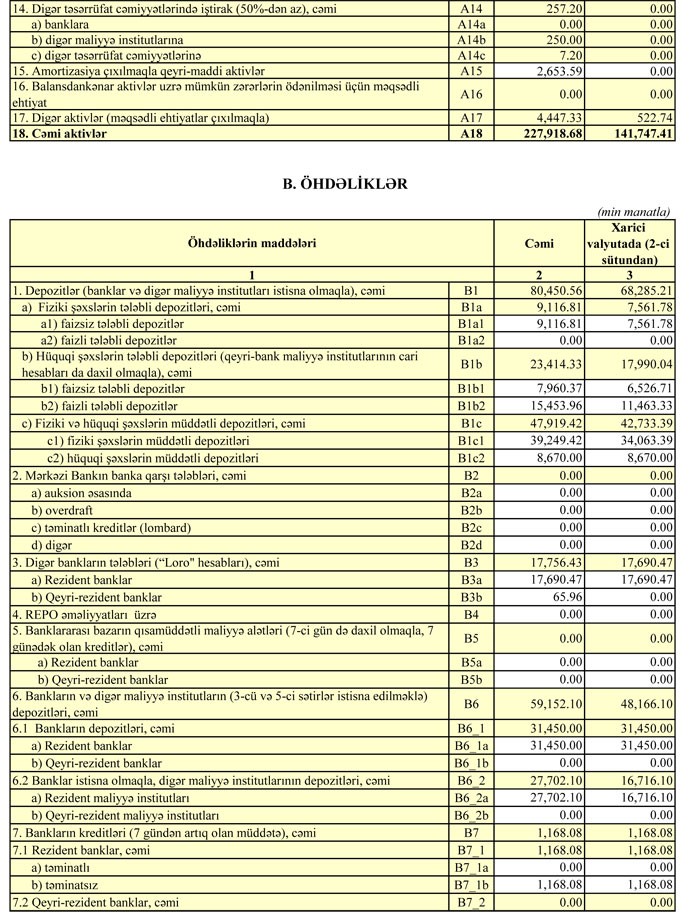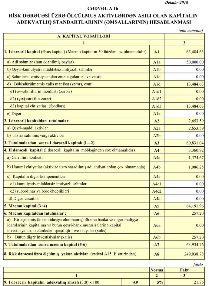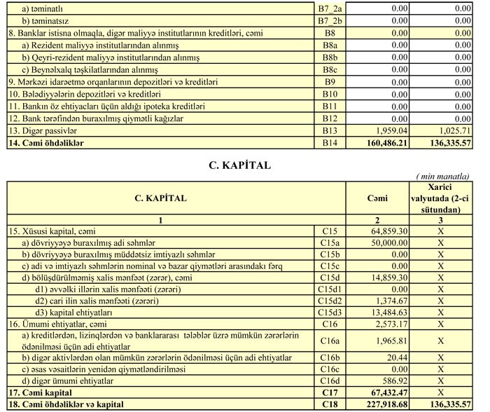 Bank ötən ilin sonunda 63 milyon 935 min manat məcmu kapitala malik olub.