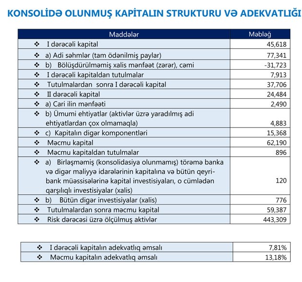 31 Dekabr 2018-ci il tarixində “Bank Respublika” 58 milyon 444 min manat məcmu kapitala malik olub. 2017-ci ilin sonunda bu rəqəm 26 milyon 678 min manat idi. Qeyd edək ki, banklara qarşı minimal məcmu kapital tələbi 50 milyon manatdır.