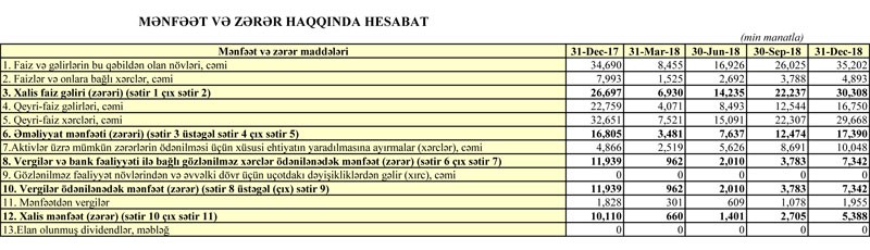 Bankın cəmi xərcləri cəmi gəlirlərindən daha çox azaldığından əməliyyat mənfəəti artıb. 2017-ci ildə əməliyyat mənfəəti 16 milyon 805 min manat ikən, 2018-ci ildə 17 milyon 390 min manat təşkil edib.