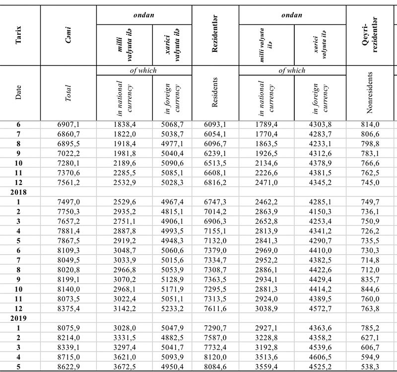 Əhalinin cəmi əmanətlərinin 42,6%-i milli valyutada, 57,4%-i xarici valyutada olub. Müqayisə üçün qeyd edək ki, Aprelin sonunda cəmi əmanətlərin 41,5%-i milli valyutada, 58,5%-i xarici valyutada idi. Mart ayının sonunda isə cəmi əmanətlərinin 39,54%-i milli valyutada, 60,46%-i xarici valyutada idi.