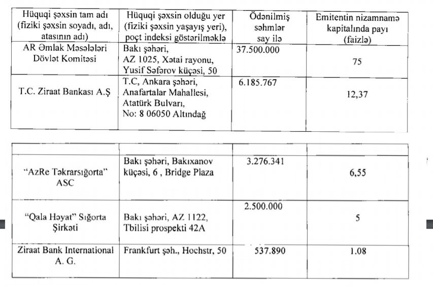 “Səhmdarların Ümumi Yığıncağının 13.06.2019-cu il tarixli iclasında 300 min manat dividendlərin ödənilməsilə bağlı qərar qəbul edilmişdir və dvidendlərin ödənilməsi iyul ayında icra edilmişdir”, - hesabatda deyilir.