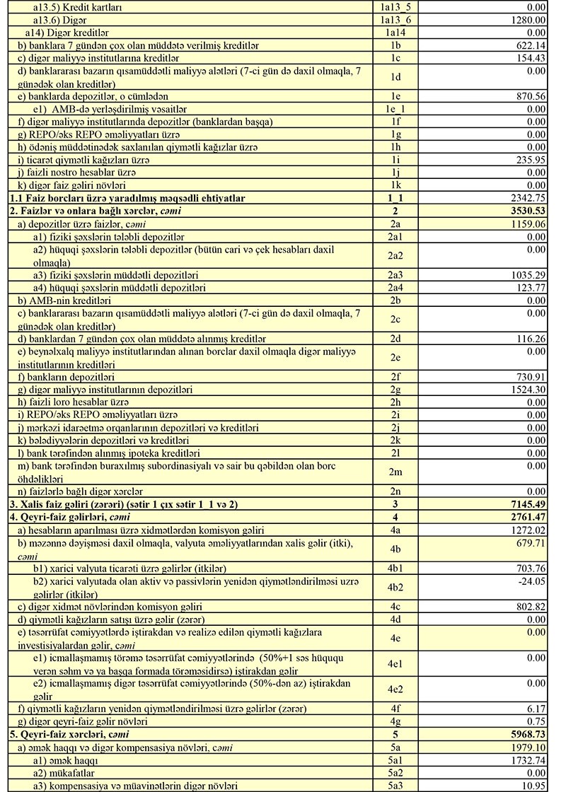 FAİZ GƏLİRLƏRİ ARTIB, QEYRİ-FAİZ GƏLİRLƏRİ AZALIB