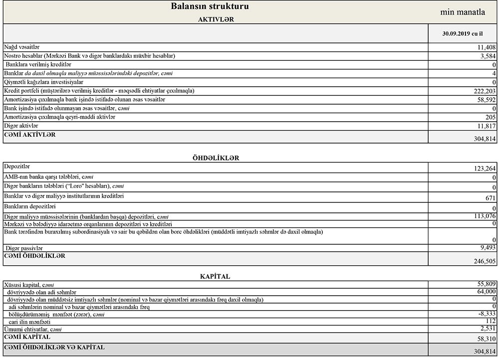 “NBC Bank” ASC 2019-cu ilin 9 ayı (yanvar-sentyabr) üzrə maliyyə göstəricilərini açıqlayıb.