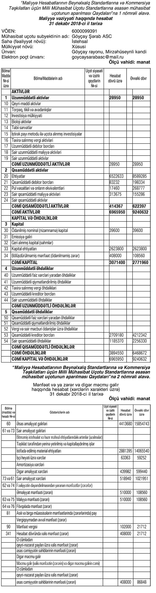 “Göyçay Şərab” ASC 2018-ci ili 408 min manat xalis mənfəət ilə başa vurub. 2017-ci illə müqayisədə şirkətin xalis mənfəəti təxminən 4,7 dəfə artıb. ASC 2017-ci ili 86 min 848 manat xalis mənfəət ilə bağlamışdı. Mənfəətin artması “Göyçay Şərab”ın satışlarının artmasından deyil, xərclərinin kəskin azalmasından qaynaqlanıb.