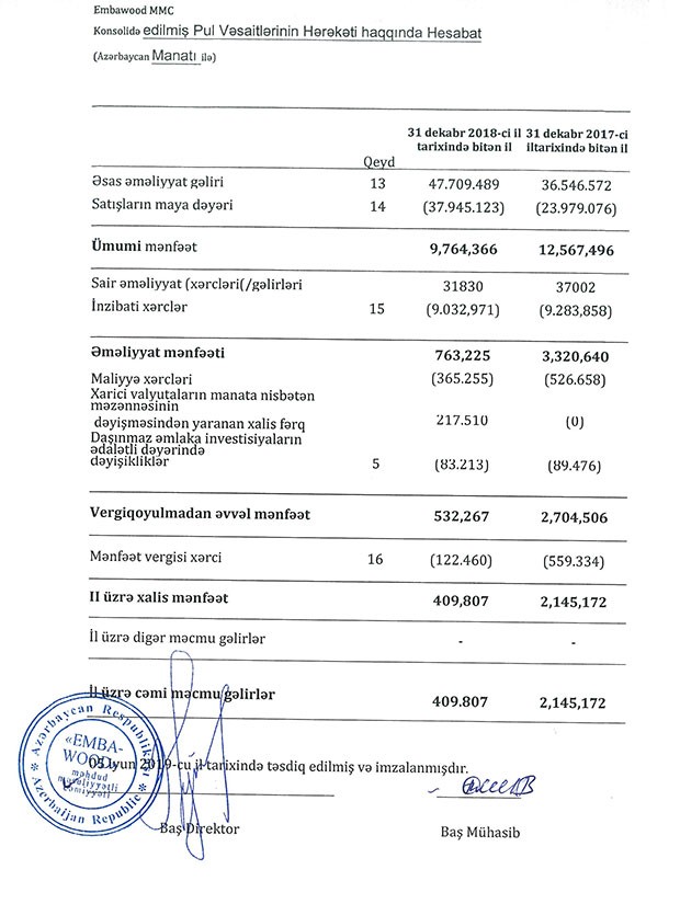 Eyni zamanda, ötən il “Embawood" 249 min manat sair əməliyyat və digər gəlirlər əldə edib.