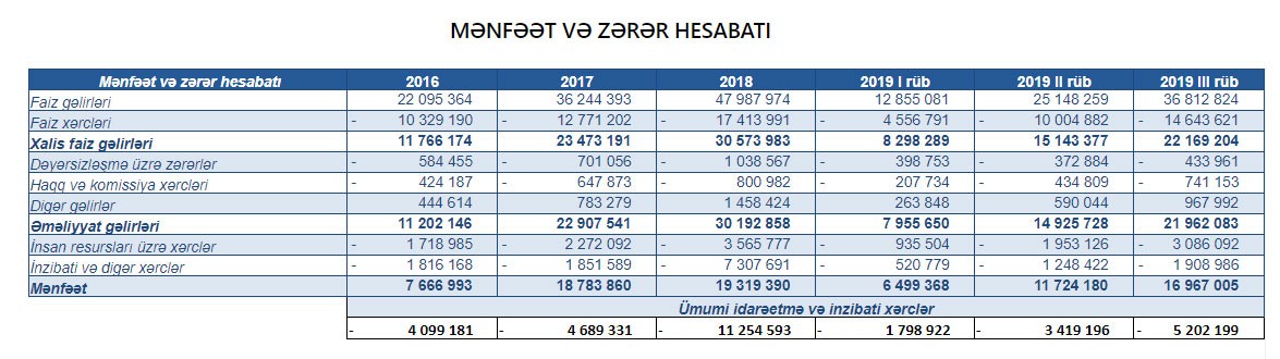İpoteka və Kredit Zəmanət Fondu 2019-cu ilin yanvar-sentyabr aylarını 16 milyon 967 min manat mənfəətlə başa vurub. Bu, illik müqayisədə 5,4% azdır.