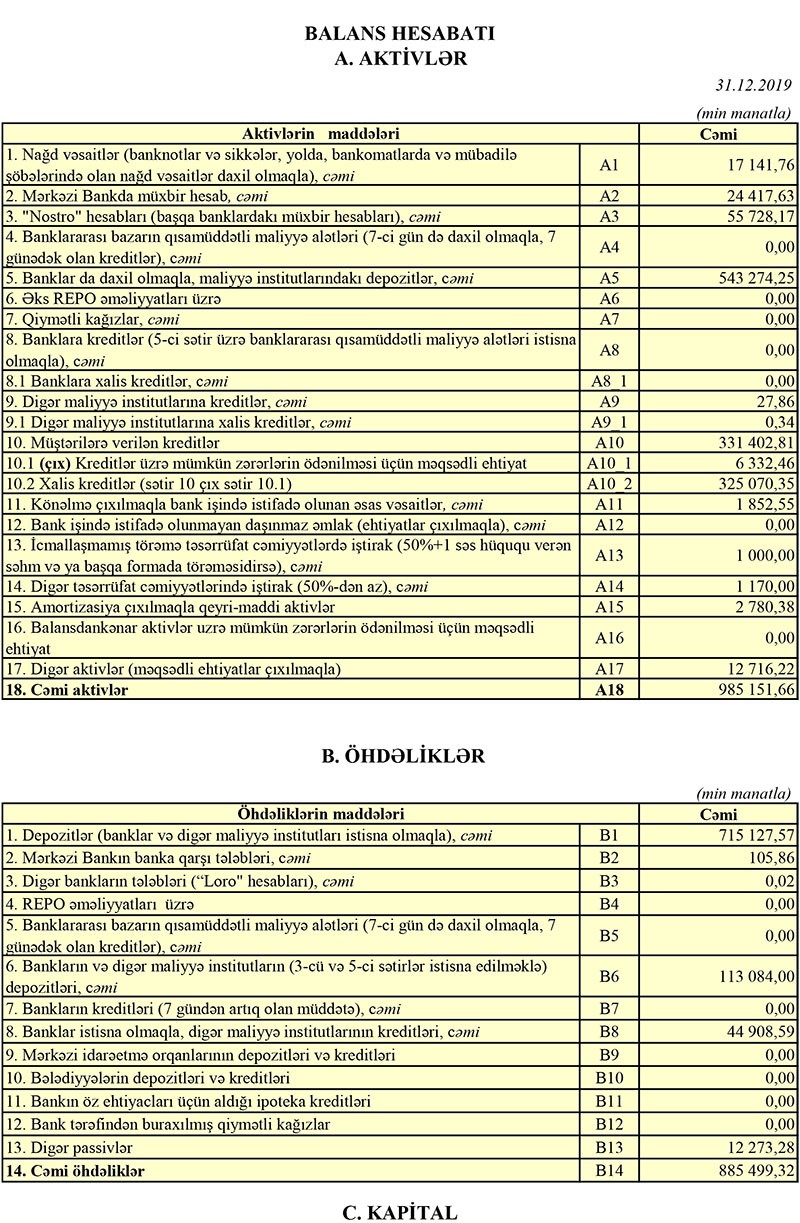 “Azərsun Holdinq”ə daxil olan bank maliyyə vəziyyətini açıqladı