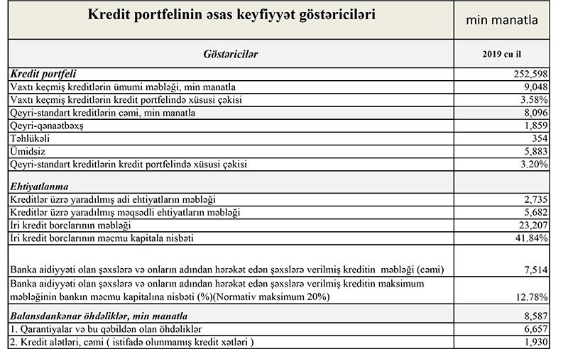 “Marja” bankın maliyyə göstəricilərinə istinadən xəbər verir ki, vaxtı keçmiş kreditlərin ümumi məbləği 2018-ci ili onunda 11 milyon 157 min manat ikən 2019-cu ilin sonunda 9 milyon 48 min manat təşkil edib.