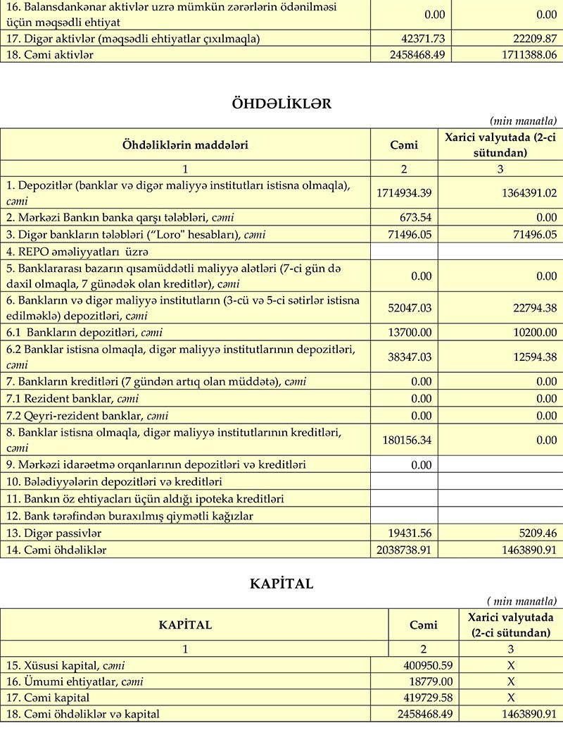3-cü böyük özəl bankdan 33 milyon manatdan çox xalis mənfəət