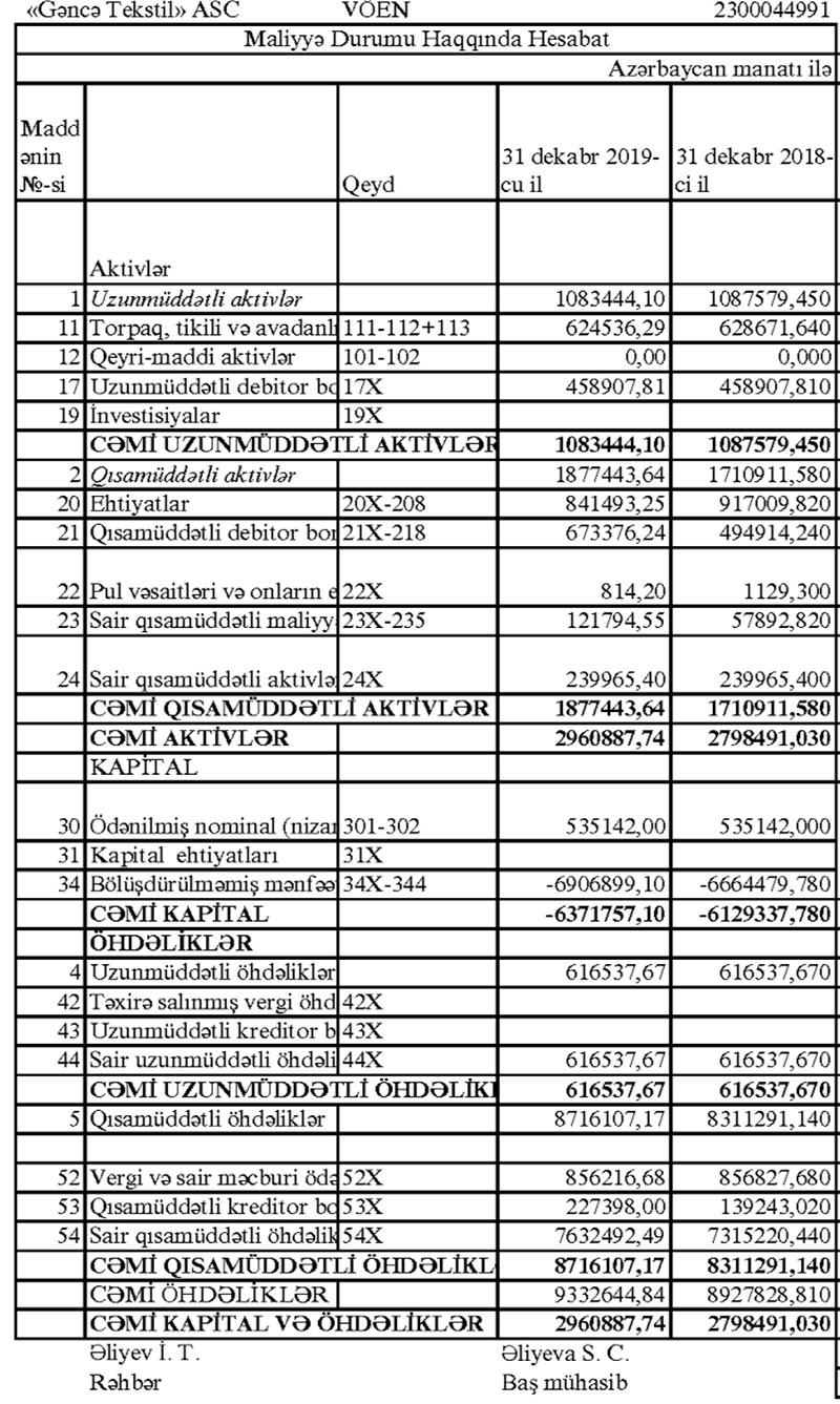 “Gəncə Tekstil” ASC 2019-cu ili 242 min manat xalis zərər ilə başa vurub. ASC 2018-ci ildə 276 min manat zərər açıqlamışdı.