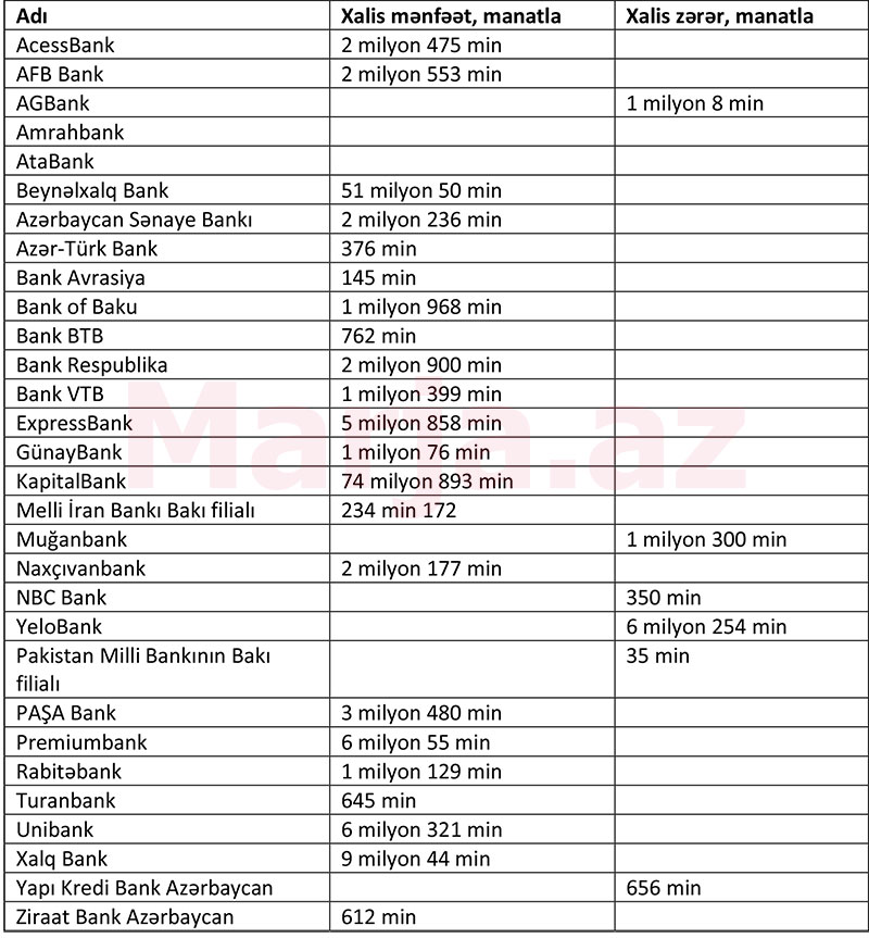 22 bank mənfəət açıqladı - SİYAHI