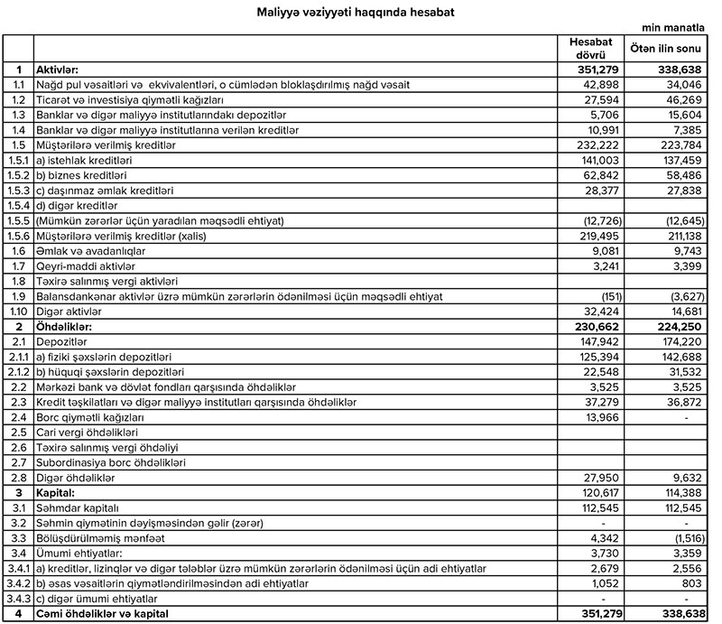 MÜŞTƏRİLƏRƏ VERİLƏN KREDİTLƏR ARTIB, BANK BÖYÜYÜB