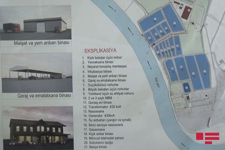 İstehsal sahələrində, o cümlədən qapalı su çevirmə sistemində isə hazırda avadanlıqlar quraşdırılır. 21 tikilidən ibarət olan və 70 hektar ərazini əhatə edən zavodun ərazisində açıq havada 35 nohur yaradılıb. Ümumiyyətlə, müasir tələblərə uyğun qurulan Kür Təcrübə Balıq artırma müəssisəsində nərə cinsli balıqların kürüsündən körpə balıqlar alınacaq. Filtirasiya olunmuş suda yetişdirilən balıqların bir hissəsi ekoloji layihə olaraq Kür çayı və Xəzər dənizinə buraxılacaq. Məqsəd sözü gedən su hövzlərində nərə cinsli balıqların nəsli kəsilmə təhlükəsini aradan qaldırmaqdır. Zavodun əsas iş prinsipi su itikisi olmadan yəni ekologiyaya zərər vermədən balıq yetişdirmək olacaq. Zavodda CITES Konvensiyası (”Kökünün kəsilməsi təhlükəsi olan vəhşi fauna və yabanı flora növlərinin beynəlxalq ticarəti”) çərçivəsində nəsli kəsilməkdə olan 4 növ edemik balığın (bölgə, kələmo, nərə və uzunburun) yetişdirilməsi planlaşdırılır. Yetişdirilən nərə cinsli balıq körpələrinin bir hissəsi böyüdülərək əmtəəlik məqsədi ilə istifadə ediləcək. İstehsal olunan balıq əti və kürü təbii su hövzələrindən ovlanan balıqlardan alınan məhsullardan fərqlənməyəcək . Bunun üçün rayonun Şirvanlı kənd ərazisində, Xəzər dənizinə yaxın sahədə yardımçı təsərrüfat yaradılıb. 64 dairəvi hovuz tikilib və dəniz suyu ilə doldurulub.