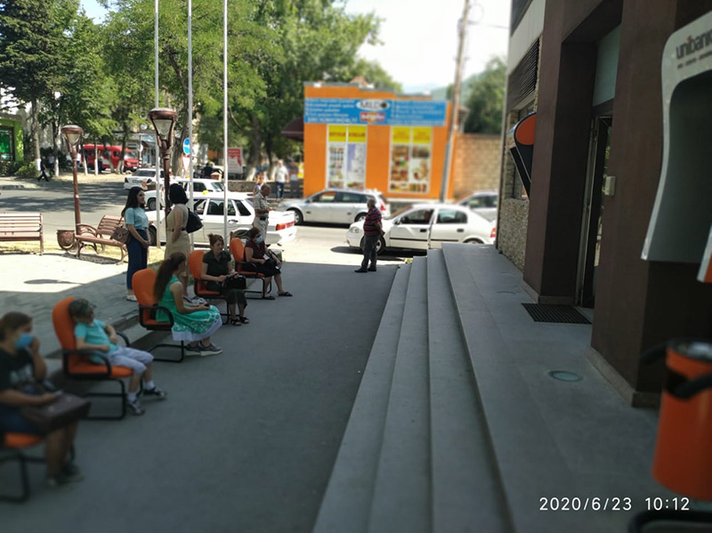 Marja xəbər verir ki, Bankın bir sıra filiallarının qarşısında müştərilərin sosial məsafəni gözləməsi üçün oturacaqlar qoyulub. Bu müştərilər arasında sıxlığın qarşısını almaq üçündür.