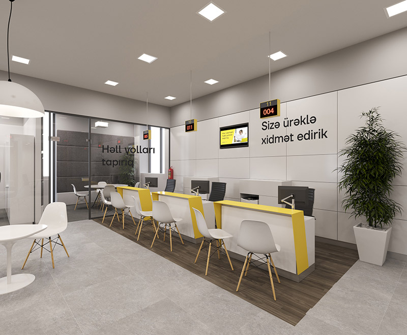 Filialda müştərilərin rahatlığı üçün bütün detallar nəzərə alınıb. Yeni filial rahatlığı ilə yanaşı, müasirliyi və bankın sloqanına uyğun olaraq parlaqlığı ilə digərlərindən fərqlənəcək. Konsept özündə müxtəlif xidmət zonalarını birləşdirəcək – 7/24, sürətli və fərdi xidmət zonaları.