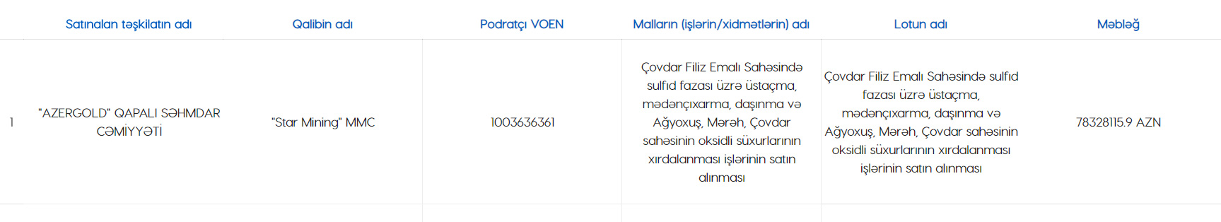 Artıq “AzerGold” şirkəti "Star Mining" şirkətilə məbləği 78 milyon 328 min 115.9 manat olan müqavilə imzalayıb.