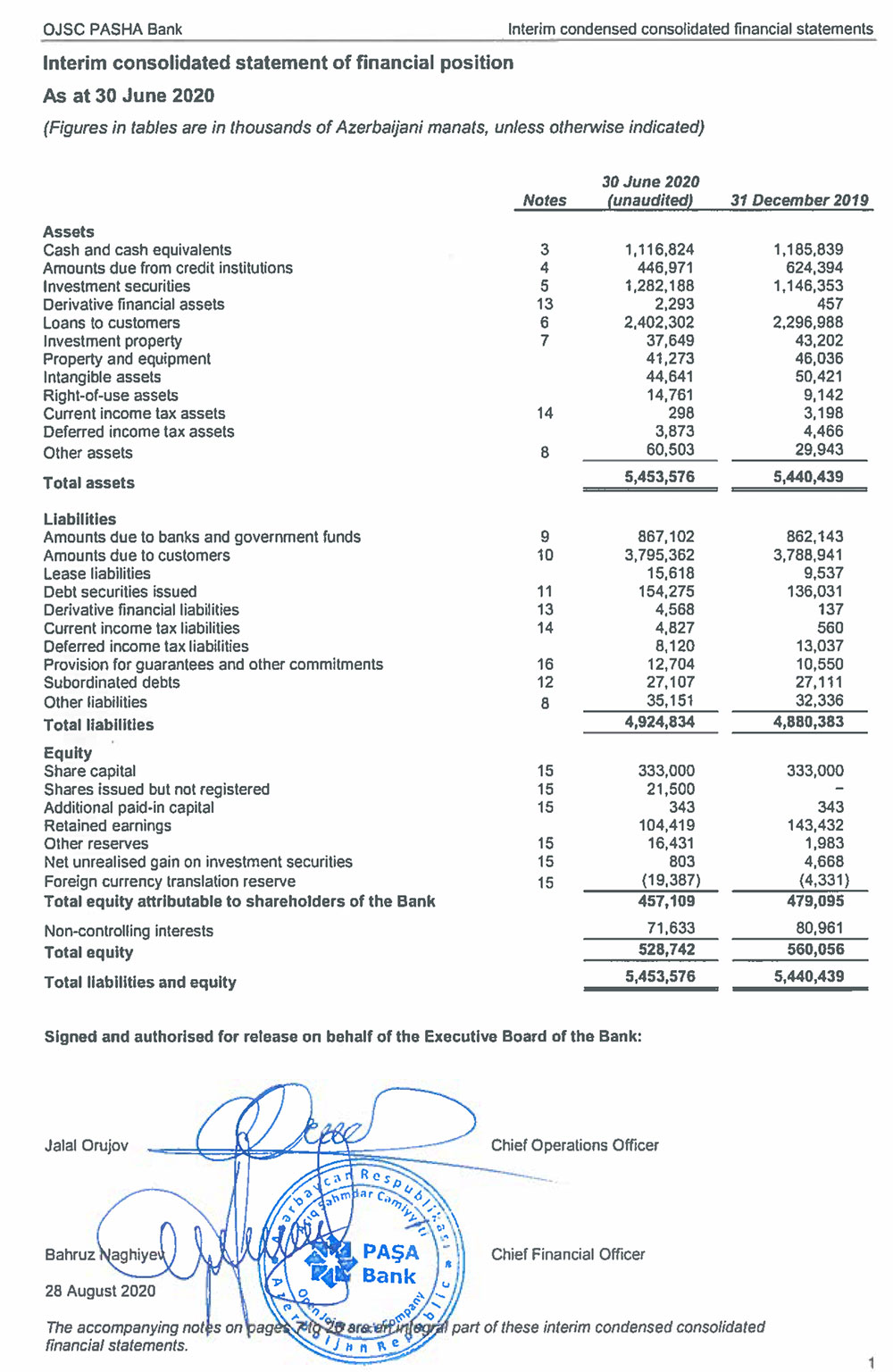 PAŞA Bank 30 iyun 2020-ci il tarixinə konsolidə edilmiş müstəqil auditorun hesabatını açıqlayıb.