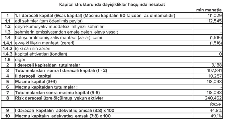 Bankda depozitlər isə 174 milyon 220 min manatdan 112 milyon 820 min manat geriləyib.