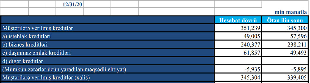 2020-ci ildə “Turanbank” ASC biznes və daşınmaz əmlak kreditlərini artırıb.