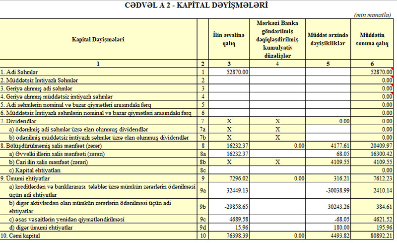 31 Mart 2021-ci il tarixində “Bank of Baku” 80 milyon 892 min manat cəmi akpitala malik olub (31 Dekabr 2020-ci il tarixində 76 milyon 398 min manat idi).