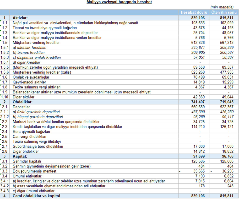İlk rübdə Unibankdakı depozitlər 3%-dən çox artaraq 741 milyon 406 min manata çatıb.