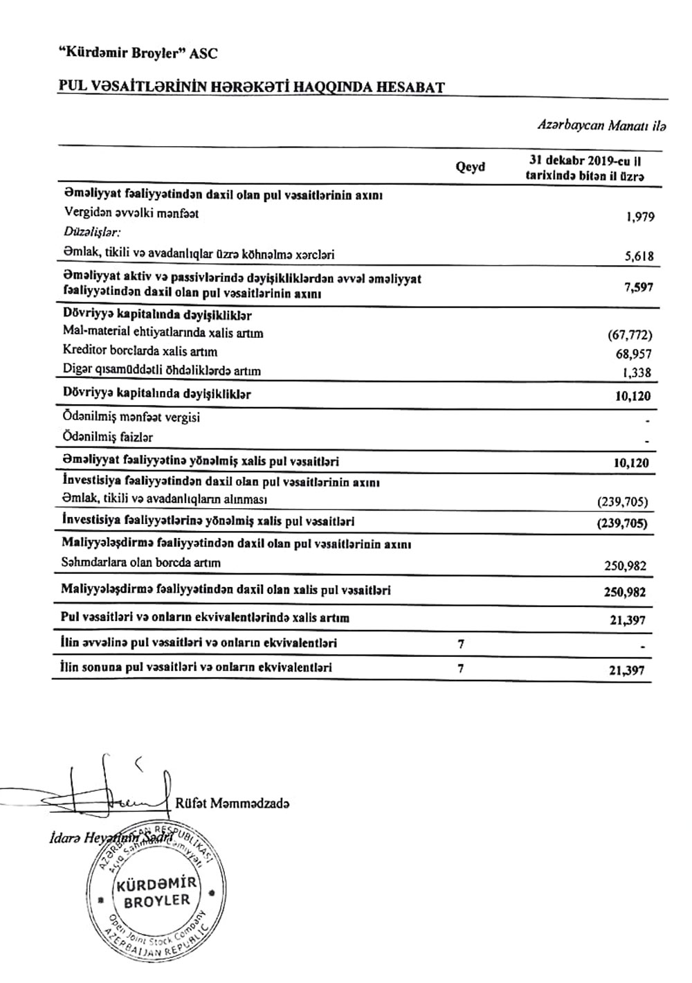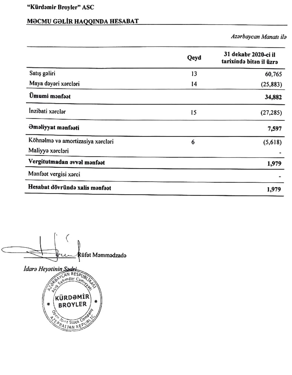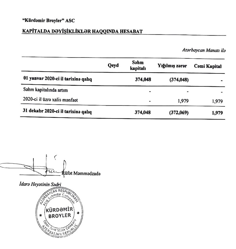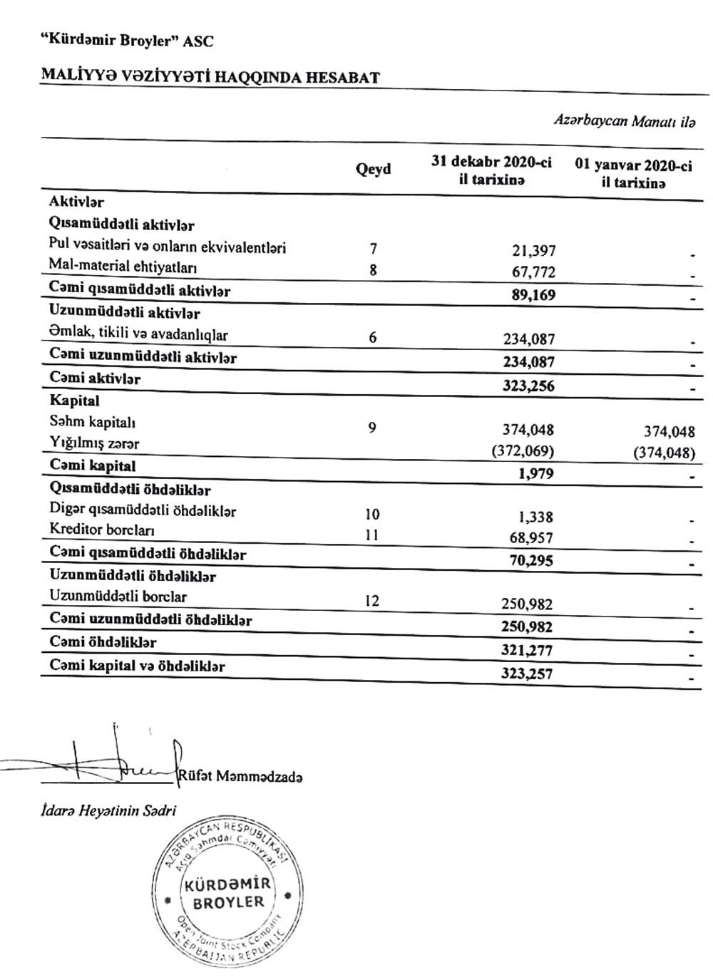 2020-ci ildə fəaliyyəti bərpa edilən “Kürdəmir Broyler” ASC maliyyə göstəricilərini açıqlayıb.