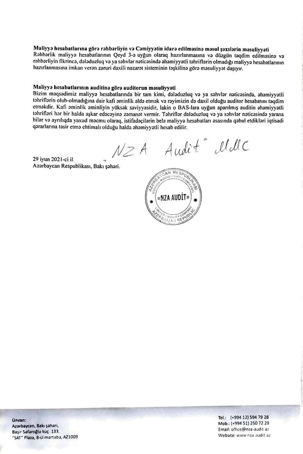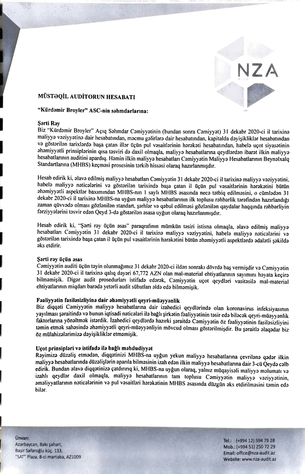 "Kürdəmir Broyler" Açıq Səhmdar Cəmiyyətinin 31 dekabr 2020-ci il tarixində bitən il üzrə ilkin maliyyə hesabatlarını və müstəqil auditorun hesabatını açıqladı.