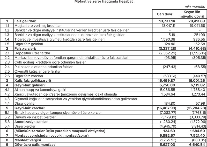 Bankın ümumi kapitalı isə keçən ilin müvafiq dövrü ilə müqayisədə 4.7% artaraq 126.8 milyon manat təşkil edib.