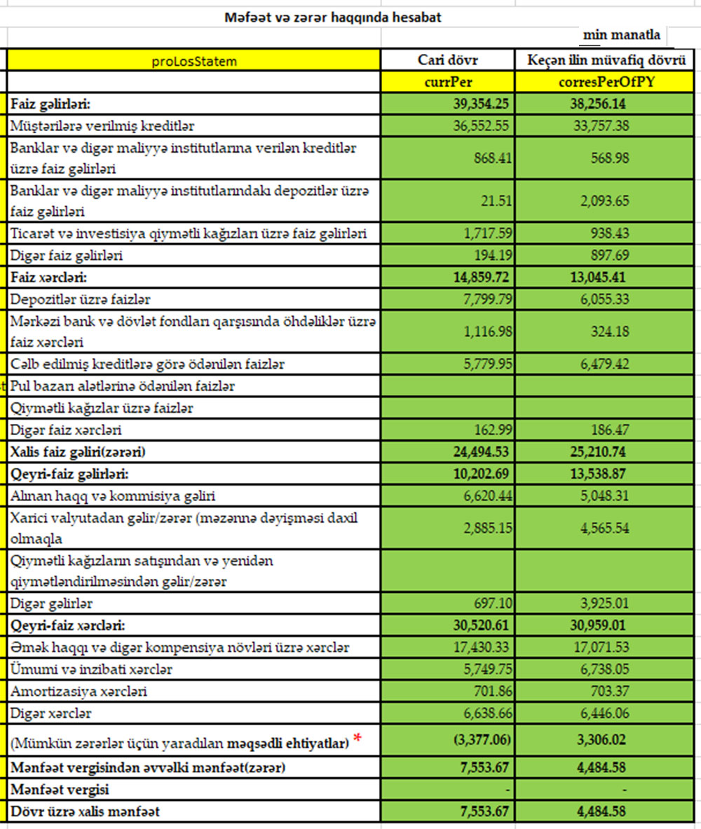 Azərbaycandakı 5-ci böyük bank maliyyə vəziyyətini açıqladı