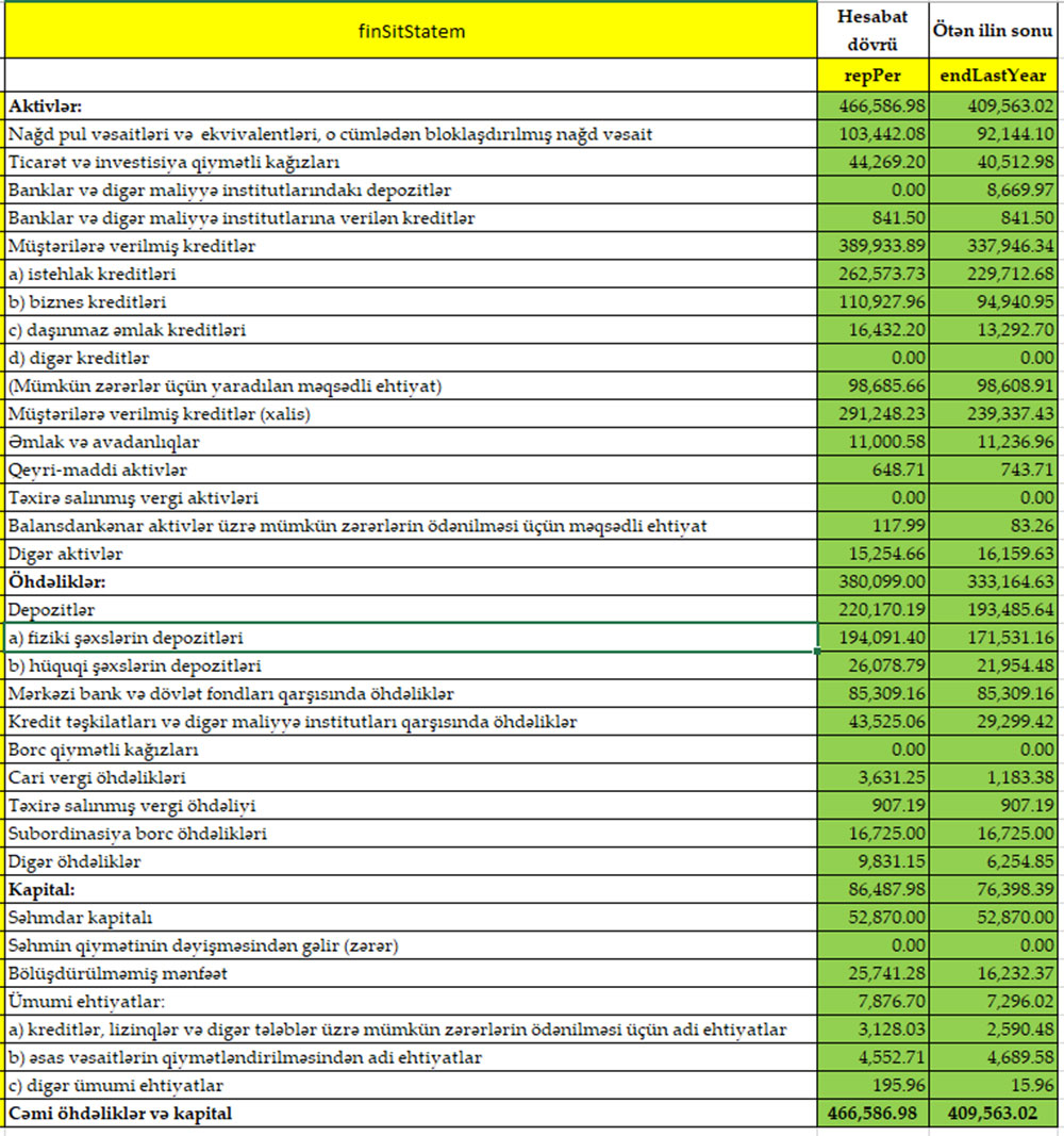 MÜŞTƏRİLƏRƏ VERİLMİŞ KREDİTLƏR ARTIB