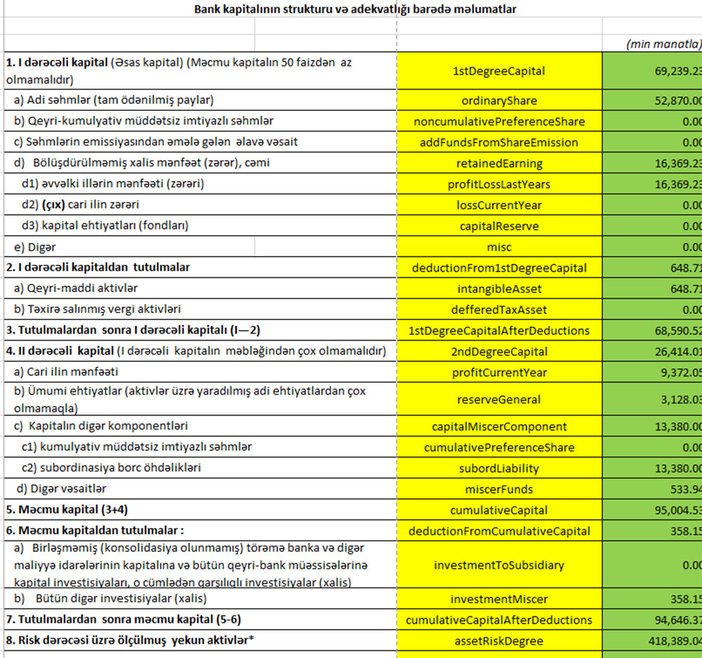 30 İyun 2021-ci il tarixində “Bank of Baku” 95 milyon 4 min manat məcmu kapitala malik olub (minimum 50 milyon manat olmalıdır). Bank normalara artıqlaması ilə cavab verir. Belə ki, “Bank of Baku”da 1-ci dərəcəli kapitalın adekvatlıq əmsalı 16,39% (norma minimum 5%), məcmu kapitalın adekvatlıq əmsalı 22,62% (minimal 10% olmalıdır), Leverec əmsalı 14,48% (minimal 4% olmalıdır) təşkil edib.