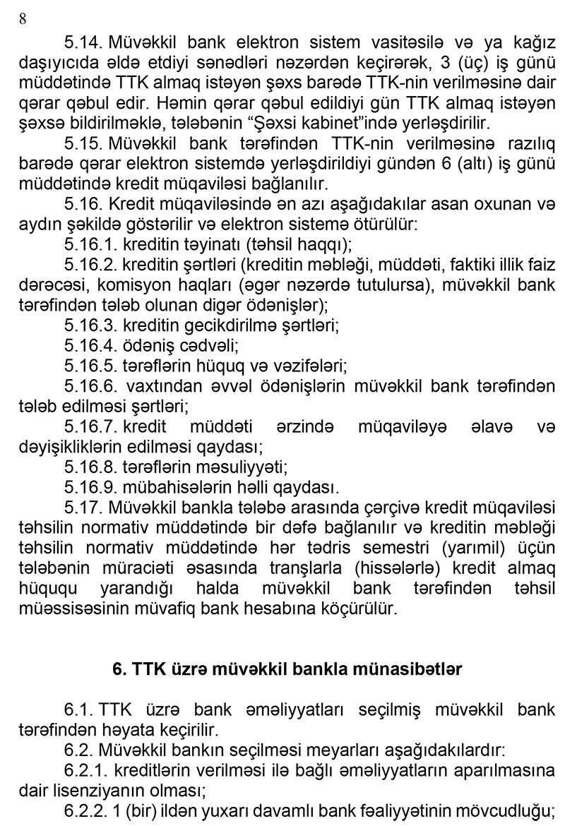 - TTK Fondun vəsaiti hesabına bu Qayda ilə müəyyən edilmiş tələbələrə müvəkkil bank tərəfindən verilir.
